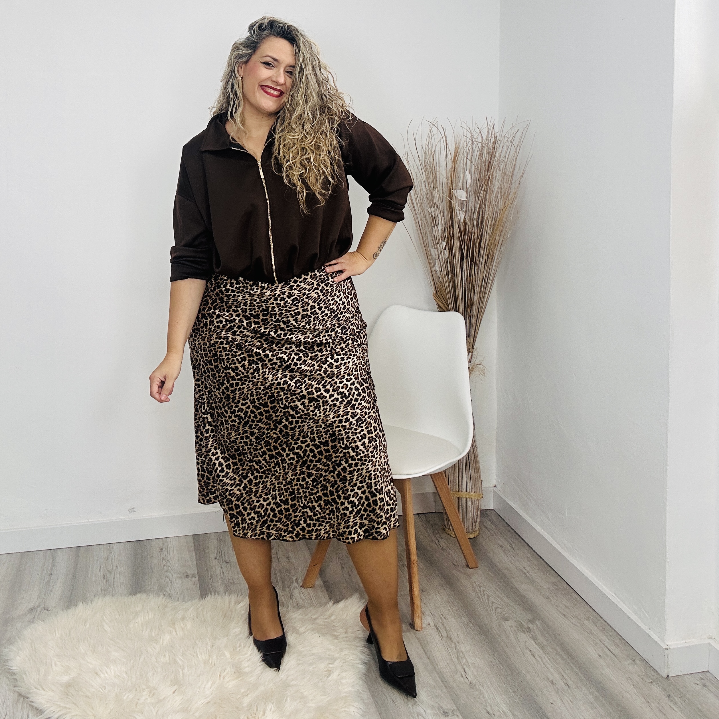 Falda Satinada Leopardo