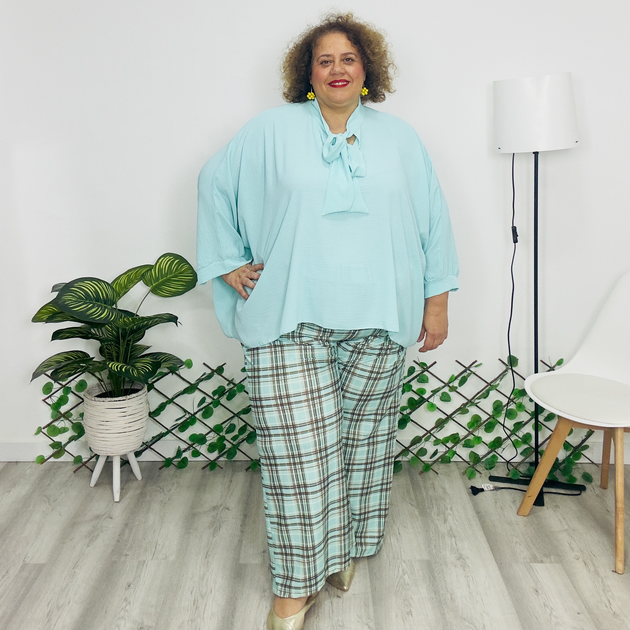 Pantalónn plus cuadros verde