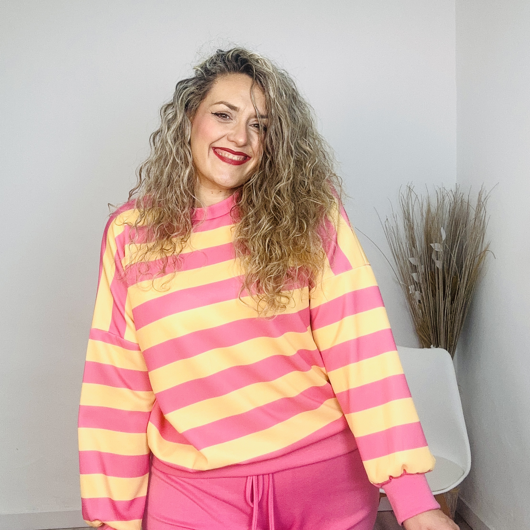 Sudadera rayas rosa/amarillo